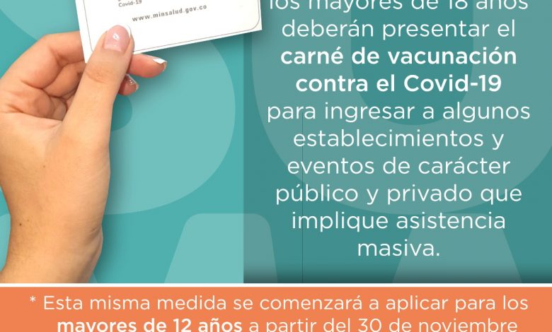 Envigado exigirá carné de vacunación para eventos públicos.