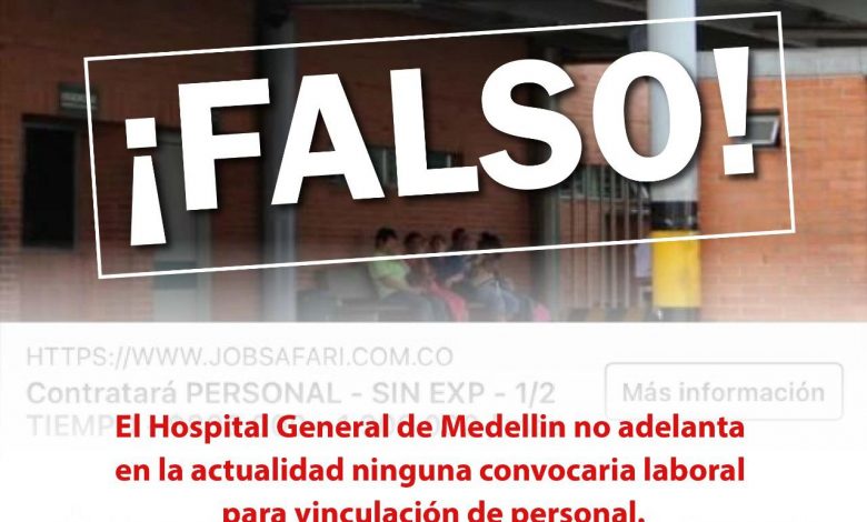 Hospital General de Medellín desmiente convocatoria laboral e invita a no creer en falsas noticias.