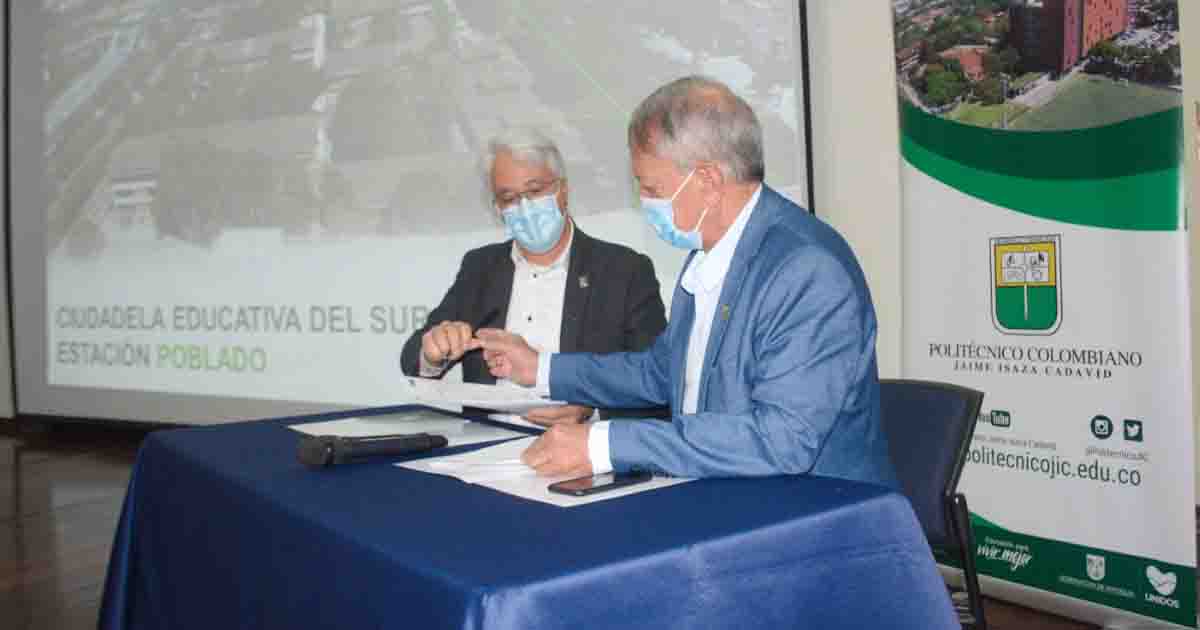 #DeInterés-El Rector del Politécnico Colombiano Jaime Isaza Cadavid, Libardo Álvarez Lopera y del Gerente del Metro de Medellín, Tomás Elejalde Escobar, se firmó un Convenio Interadministrativo entre estas dos entidades públicas, para estructurar un desarrollo físico que beneficie a esta institución de educación superior y a la estación Poblado que la integra con el más importante sistema masivo de transporte del país, aprovechando la ubicación estratégica que tiene.