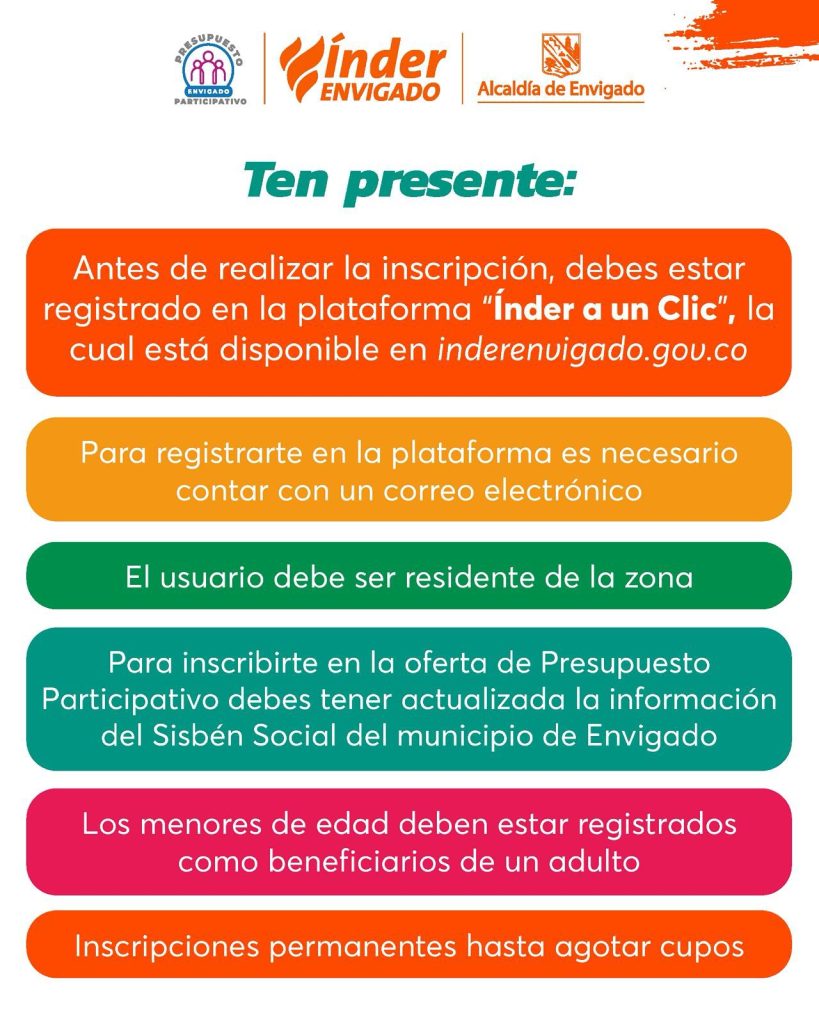 • Tener actualizada la información del Sisbén Social del municipio de Envigado.