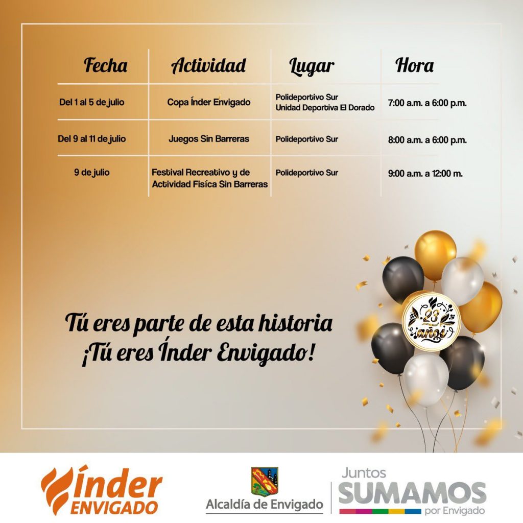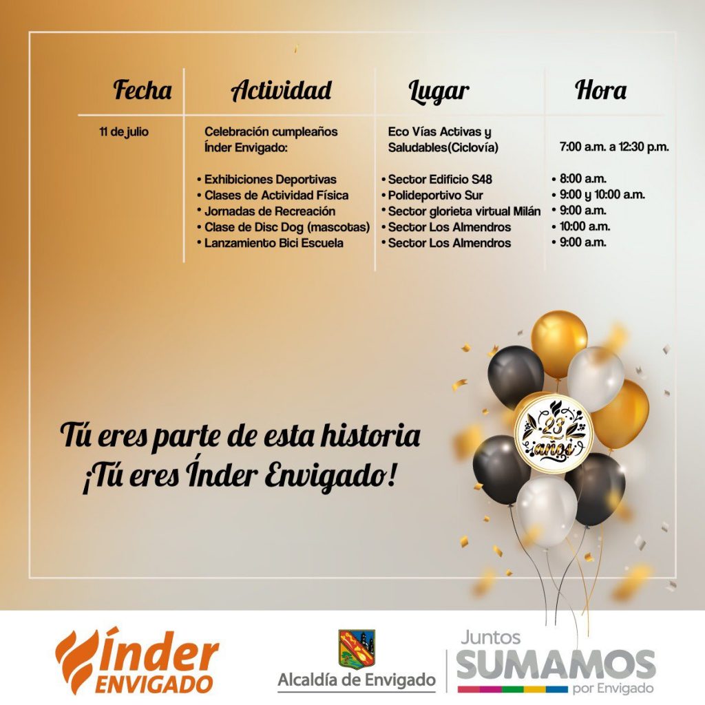 #DeInteres-Estamos cumpliendo 2️⃣3️⃣ años entregando bienestar, felicidad y salud a todos los envigadeños, por eso te invitamos a celebrar con nosotros el domingo 11 de julio a partir de las 7:00 de la mañana, en las Eco VAS (ciclovía)