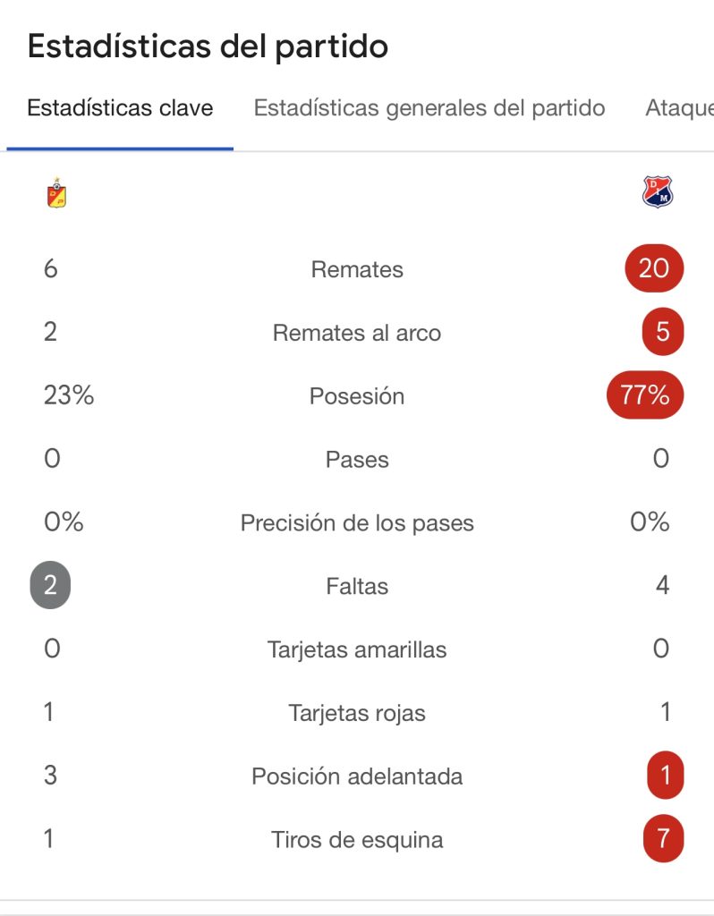 Desde el arranque, el conjunto de Alejandro Restrepo mostró jerarquía. A los 5 minutos, Jhon Alexander Palacios abrió la cuenta tras un centro preciso de Jarlan Barrera. El dominio fue total durante el primer tiempo, aunque la expulsión de Diego Moreno complicó momentáneamente el panorama para los rojos.