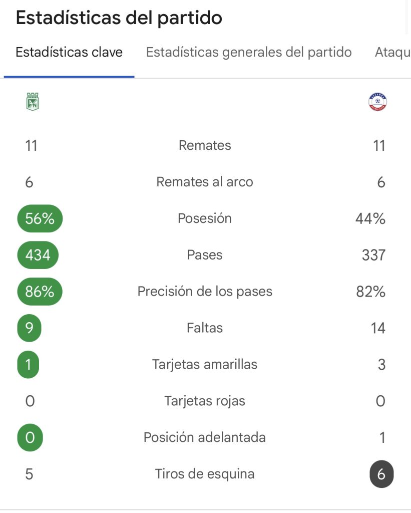 • Nacional fue superior en casi todas las fases del juego: posesión, precisión y verticalidad