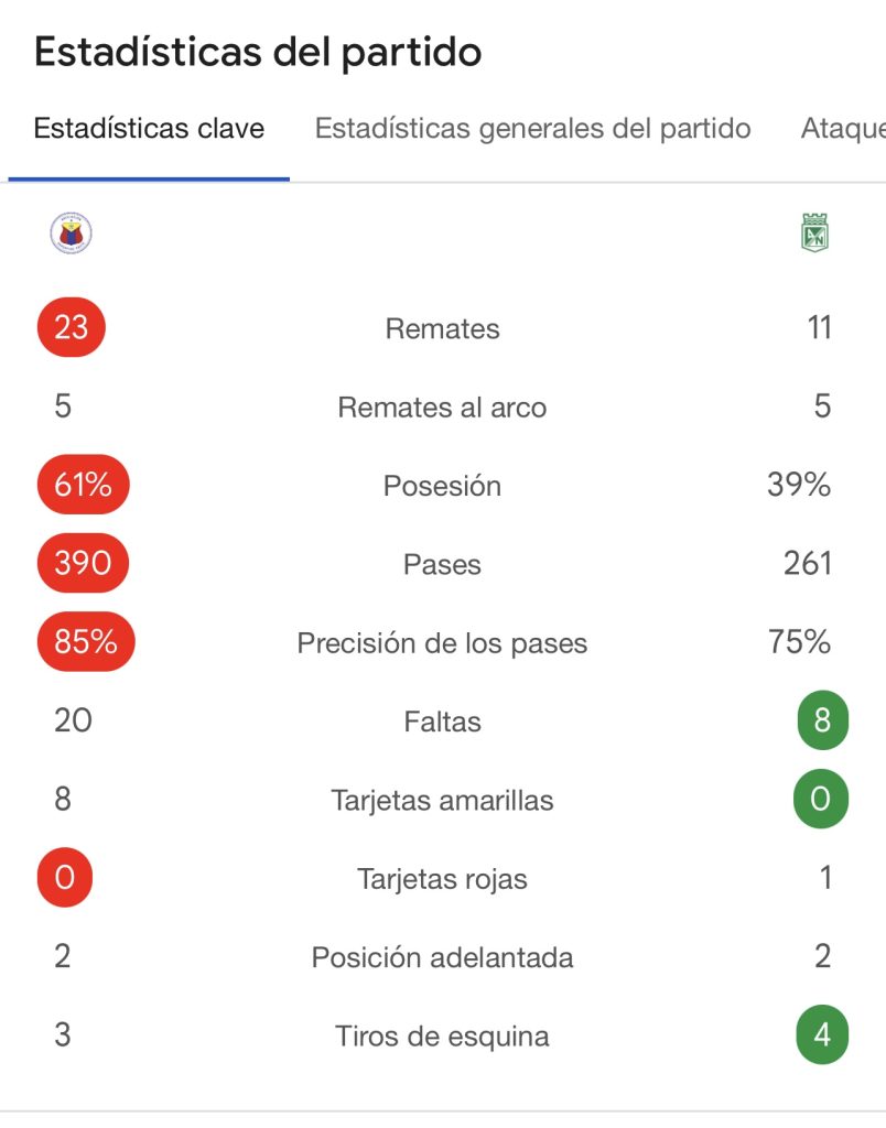 El empate deja a Nacional con un sabor agridulce por la forma cómo inició jugando el compromiso, por la expulsión de Moreno y por un penal no pitado a favor. Ahora, el reto será corregir errores y asegurar la clasificación en casa en la próxima jornada