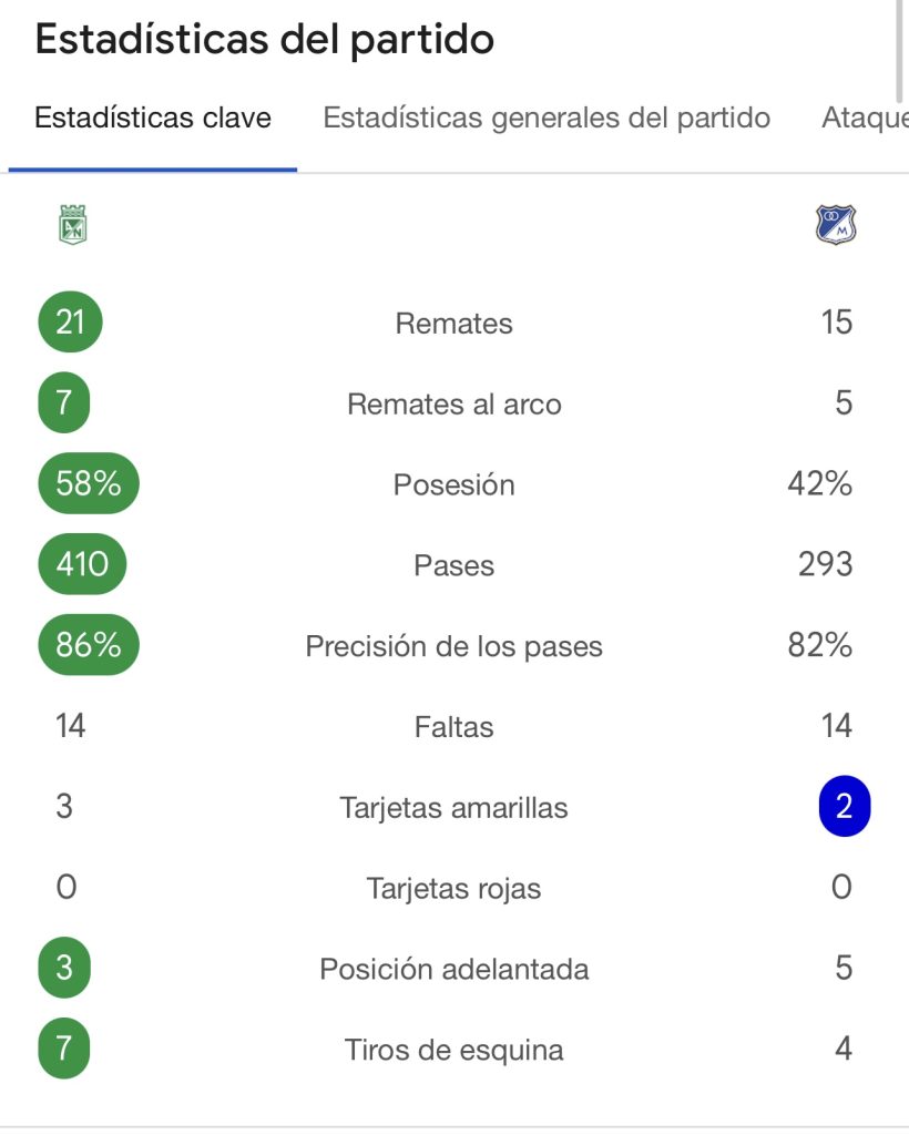 Con este triunfo, Nacional rompió una racha de más de 7 años sin vencer a Millonarios en Medellín, un peso que cargaba la hinchada y que hoy quedó atrás. Los verdolagas suman ahora 23 puntos, ubicándose en la cuarta posición, mientras que Millonarios quedó rezagado en la casilla 13 con 14 unidades, complicando su clasificación.
